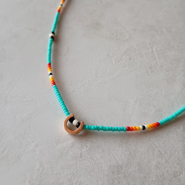 幸運をキャッチする 馬蹄チャーム ネイティブビーズネックレス