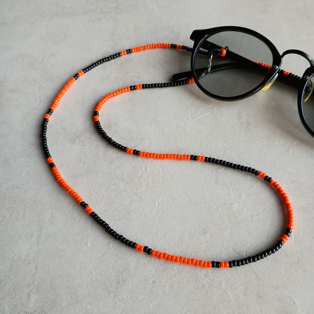 グラスコード 3wayグラスコード 置き忘れ防止!失くさない! メガネストラップとしてだけでなく、マスクストラップやネックレスとしてもお使いいただける多機能なグラスコードです。 ビーズを一粒ずつ丁寧に組み合わせ、模様を作ります。 視覚的にも楽しめるデザインです。 3wayの使い方 メガネストラップ: メガネのフレームにしっかりと装着でき、落下を防ぎます。 マスクストラップ: メガネ留めを外すことで、マスクの紛失防止にも役立ちます。 ネックレス: ネックレスとしてもご使用いただけます。 ビーズのグラスコードは、実用性とファッション性を兼ね備えたアイテムです。 多機能でありながら、見た目にもこだわったアクセサリー。ぜひお試しください♪ 太さ3mmのグラスコードです。 全長: 約70cm(メガネ留め含む) ビーズ: ガラス(日本製) ベースカラー: ブラック/オレンジ 繊細な商品の為、お取扱い・保管について充分にご注意ください。 無理な力は加えないようにお願い致します。 また、1点ずつ手作業で製作しておりますので若干の個体差が出る場合がございます。 作品は出来るだけ現物と同じになるよう撮影しておりますが、若干色味が違う場合もございます。PCディスプレイの性質上、実際の色と異なって見える場合がございますので予めご了承ください。 #アメカジ #ファッション #男女兼用 ビーズ/ガラスビーズ/国産ビーズ/グラスコード/メガネストラップ/メガネチェーン/便利/メガネがなくならない/なくさない/置き忘れ防止/マスクストラップ/ネックレス/カジュアル/デイリー/3way/ユニセックス