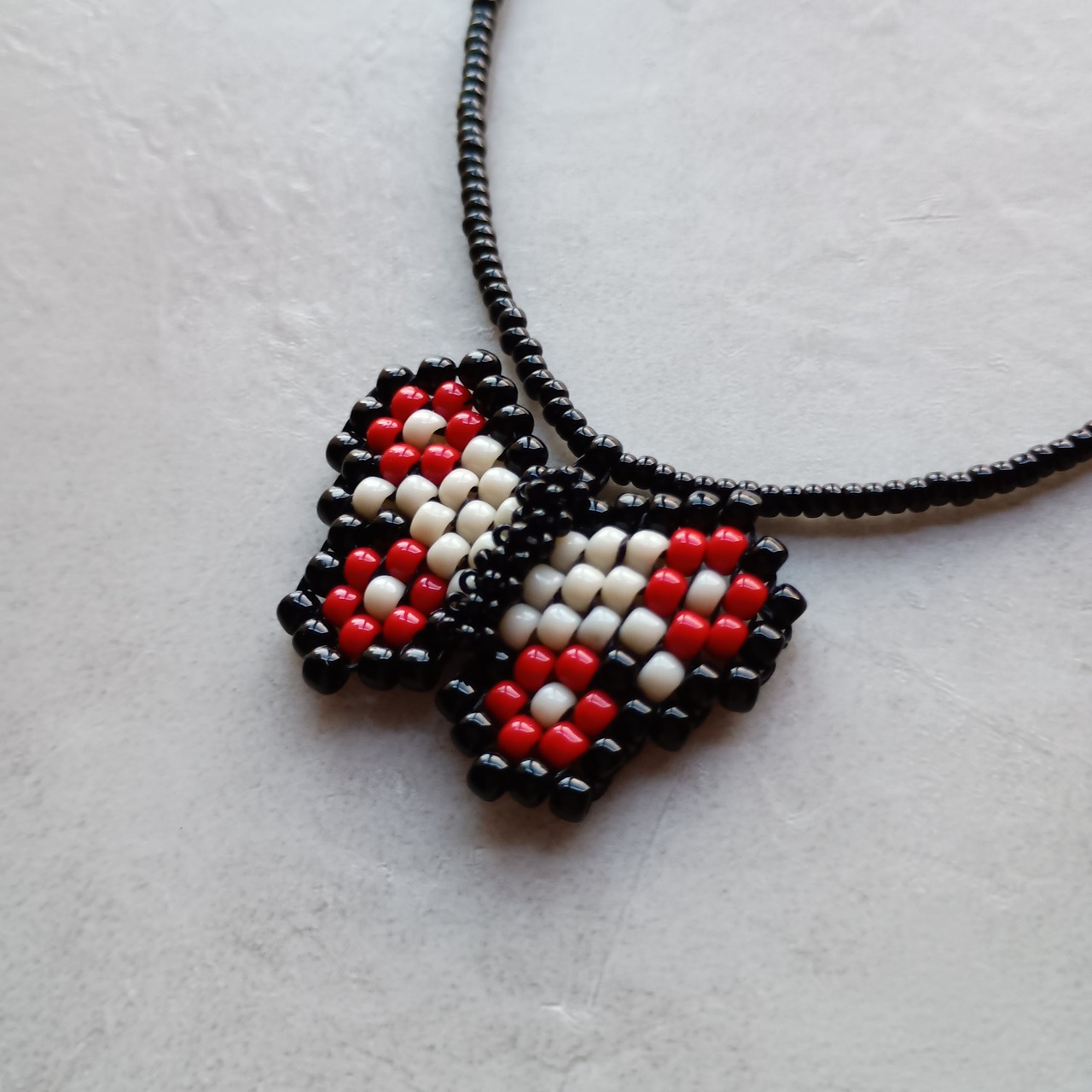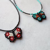 繊細なガラスビーズで作られた、蝶のモチーフのネックレスです。