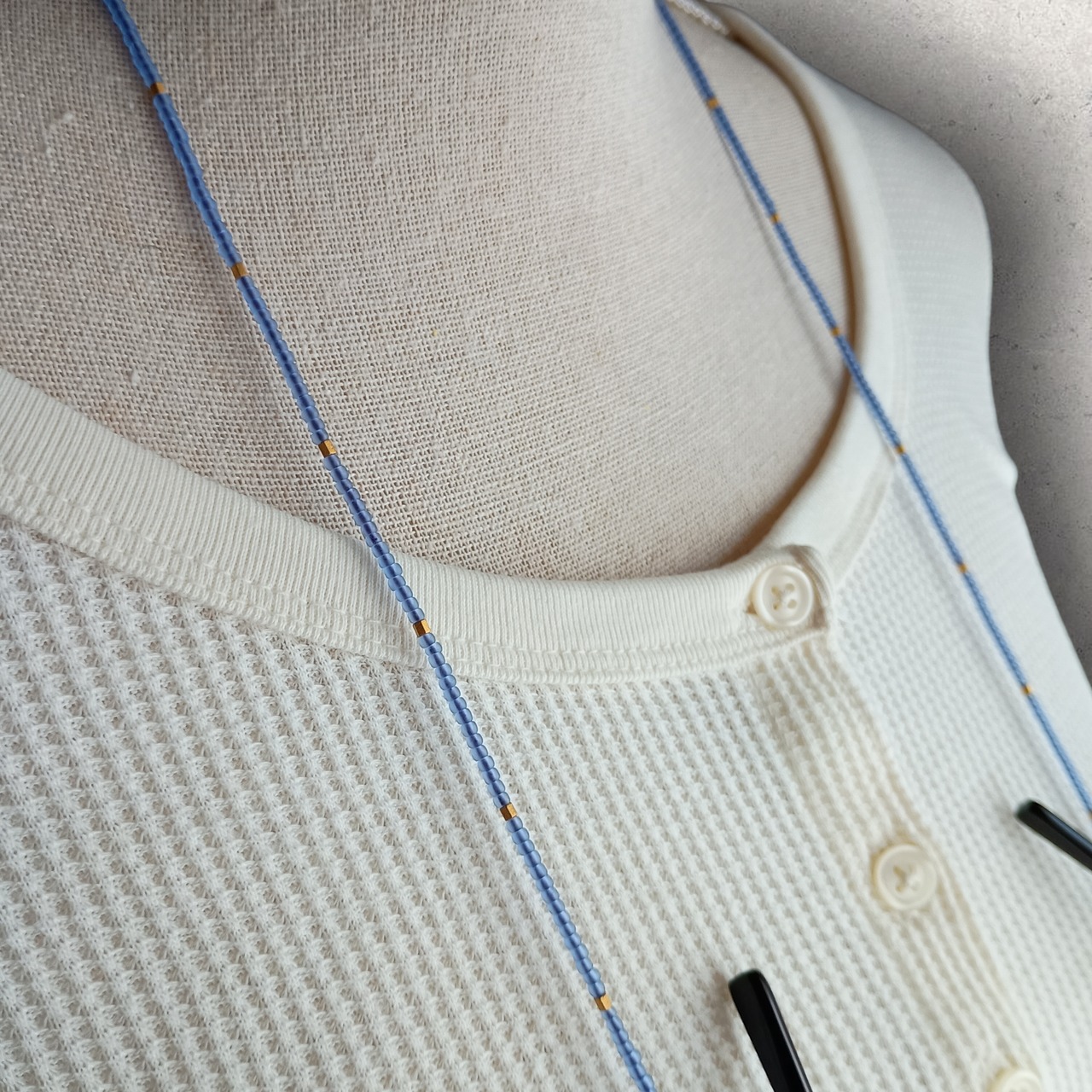 メガネストラップとしてだけでなく、マスクストラップやネックレスとしてもお使いいただける多機能なグラスコードです。