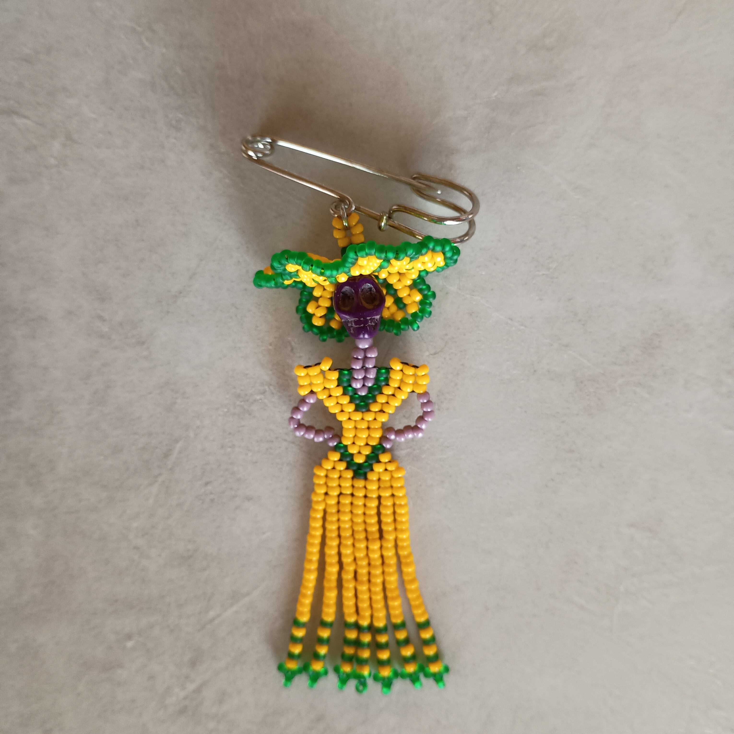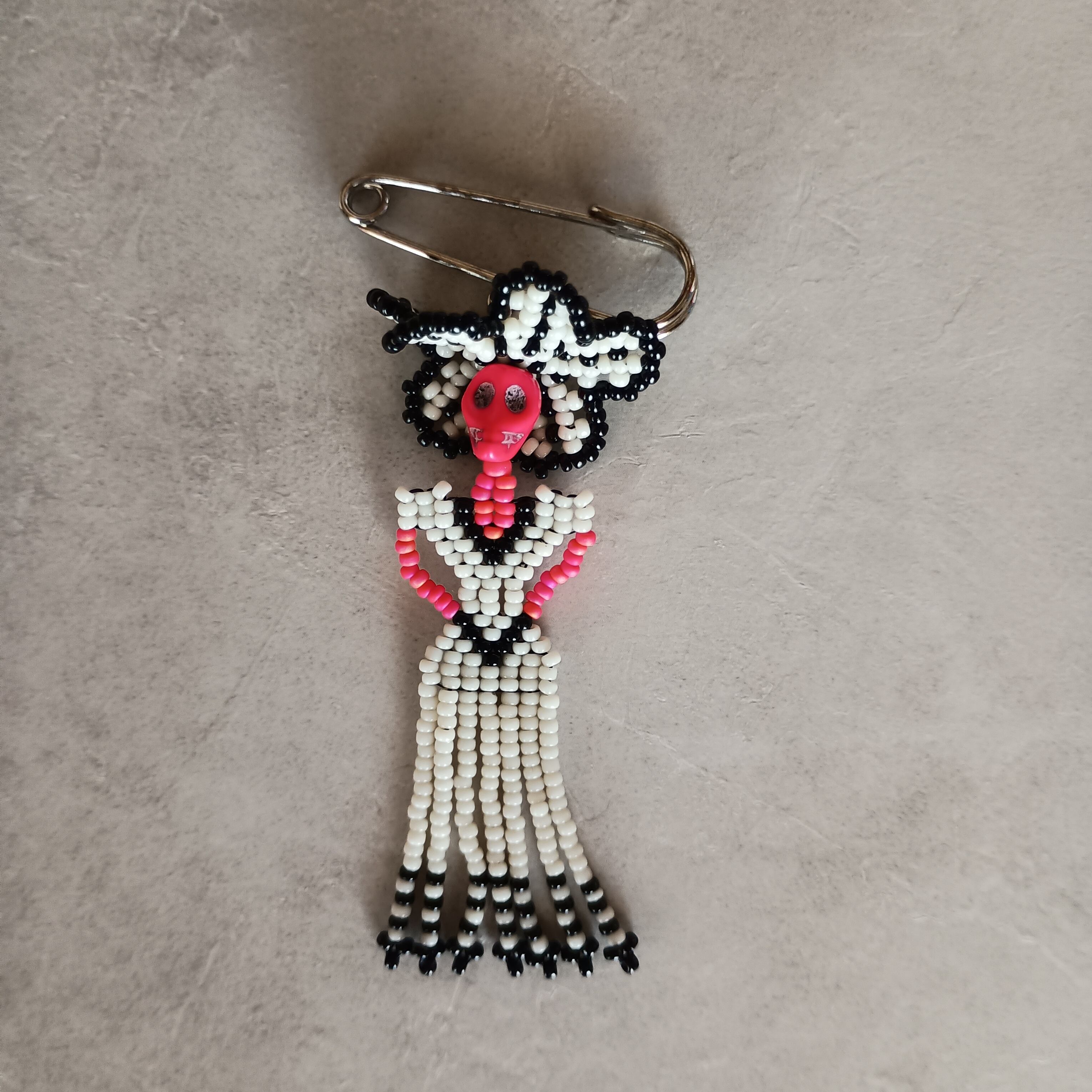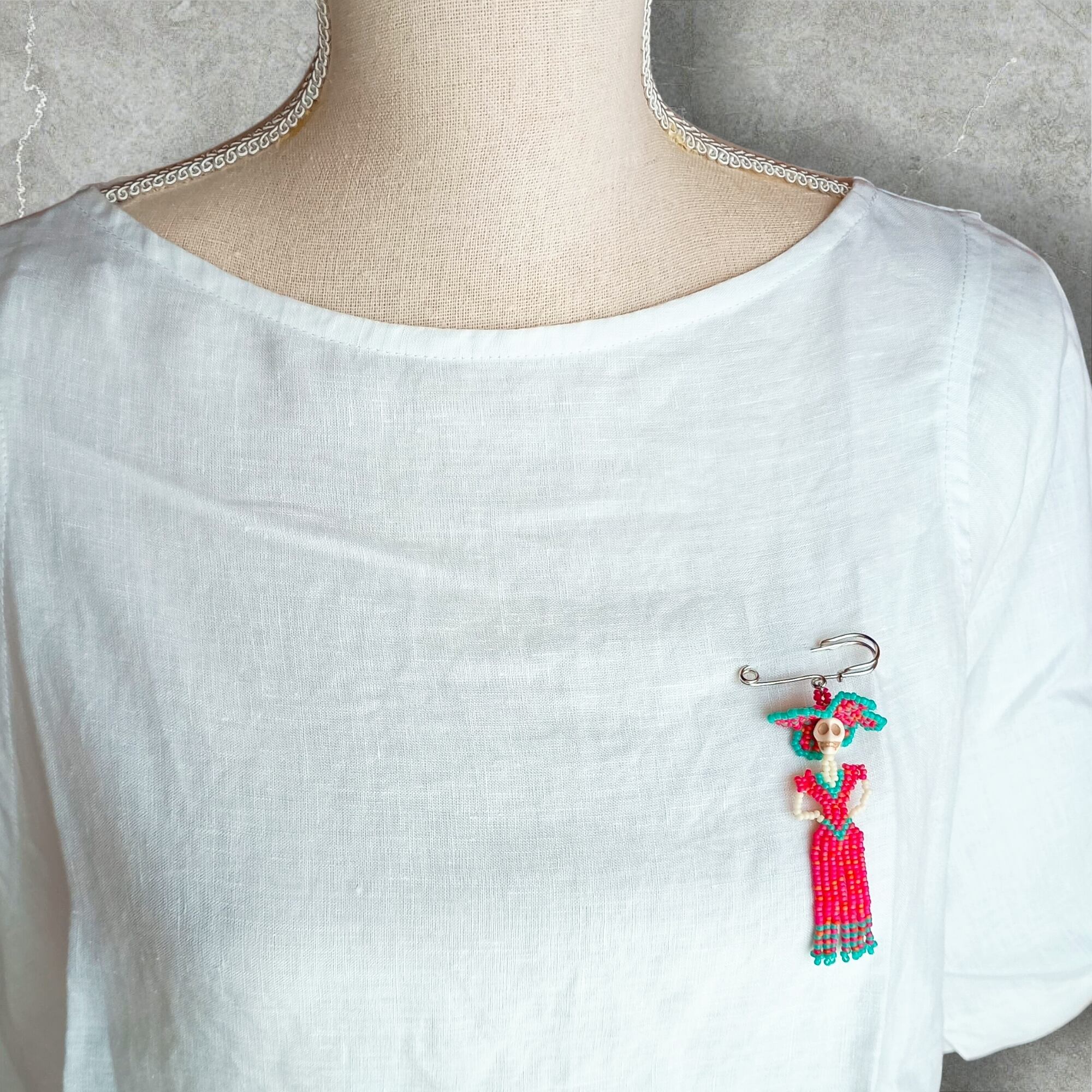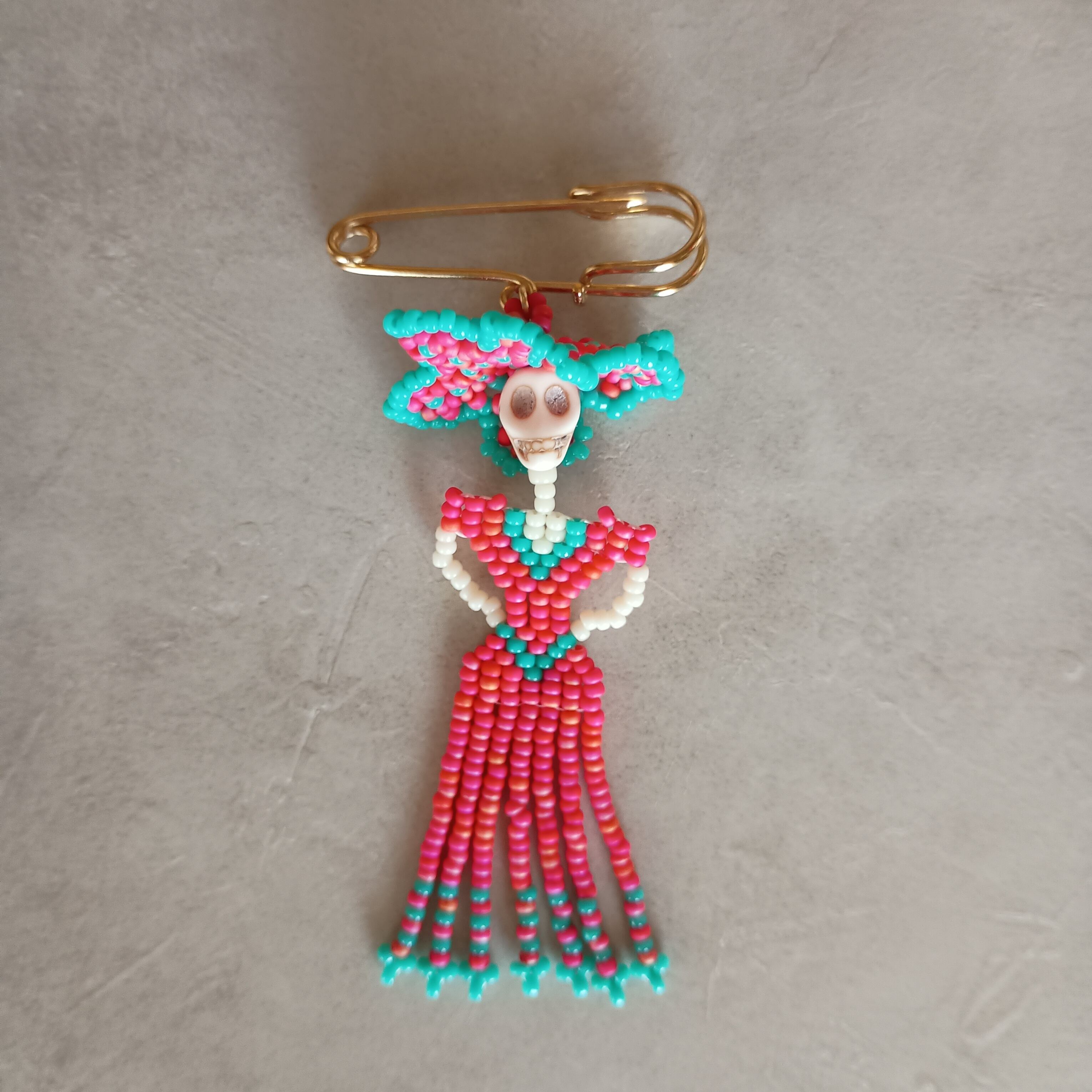 We've created Catrina brooches by combining tiny beads one by one.