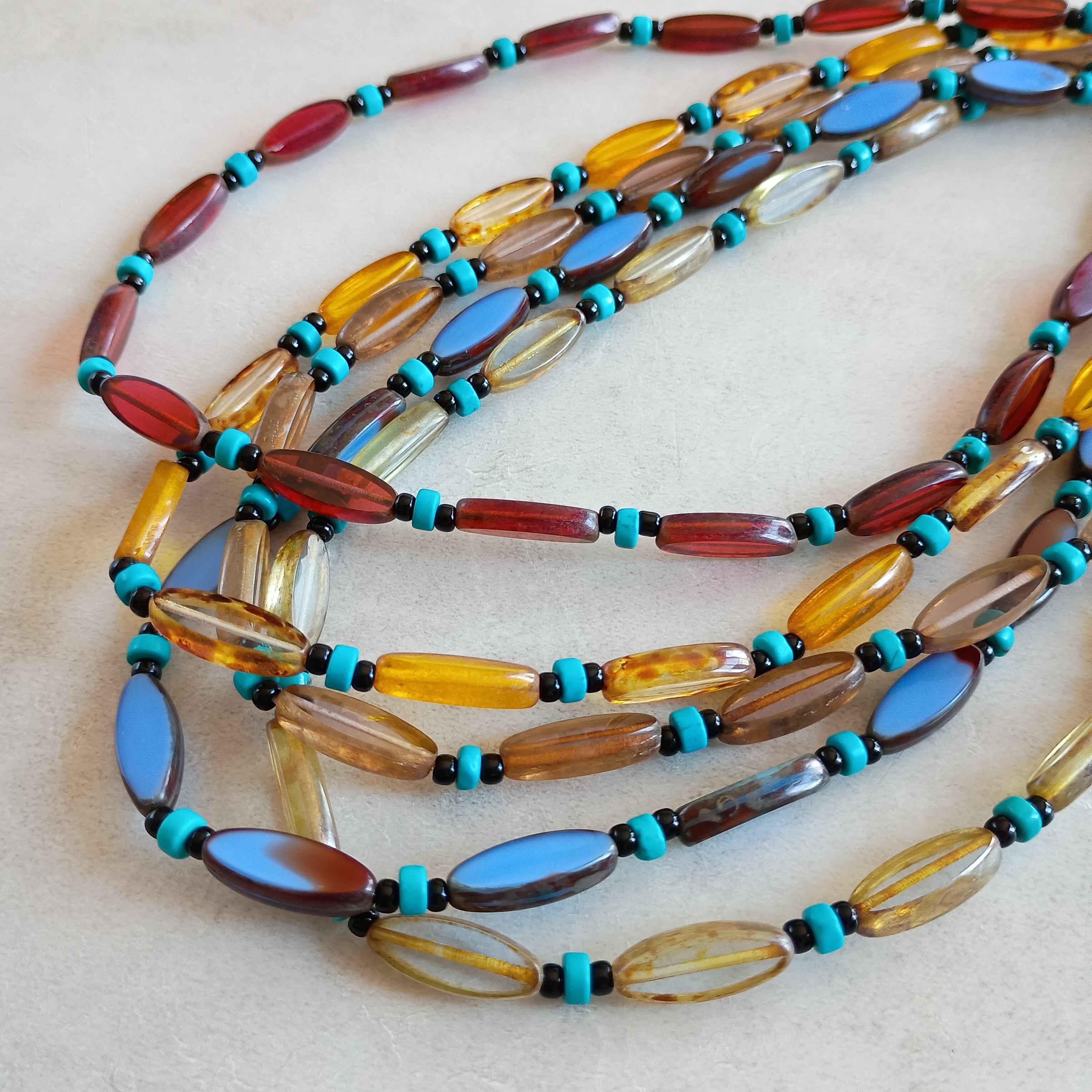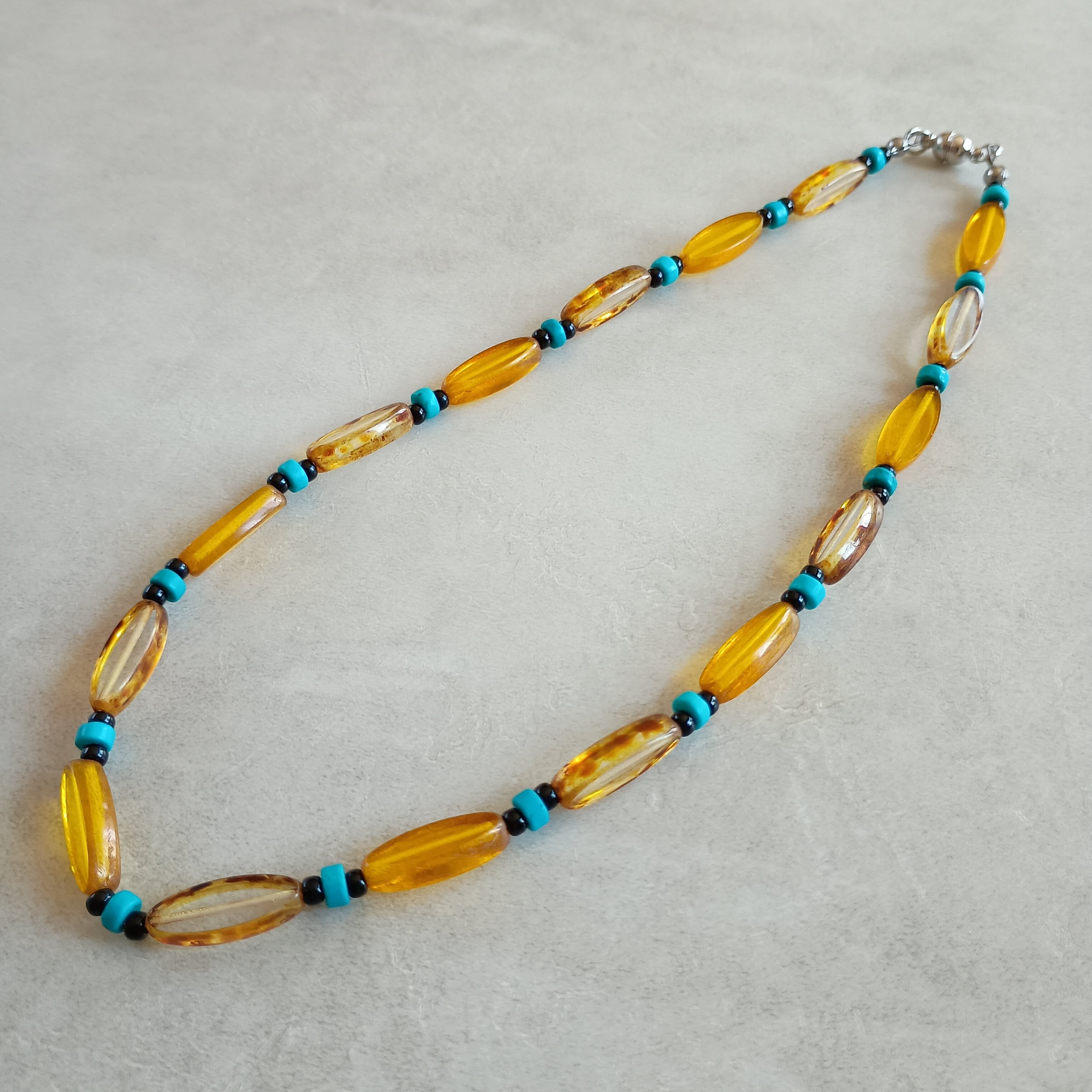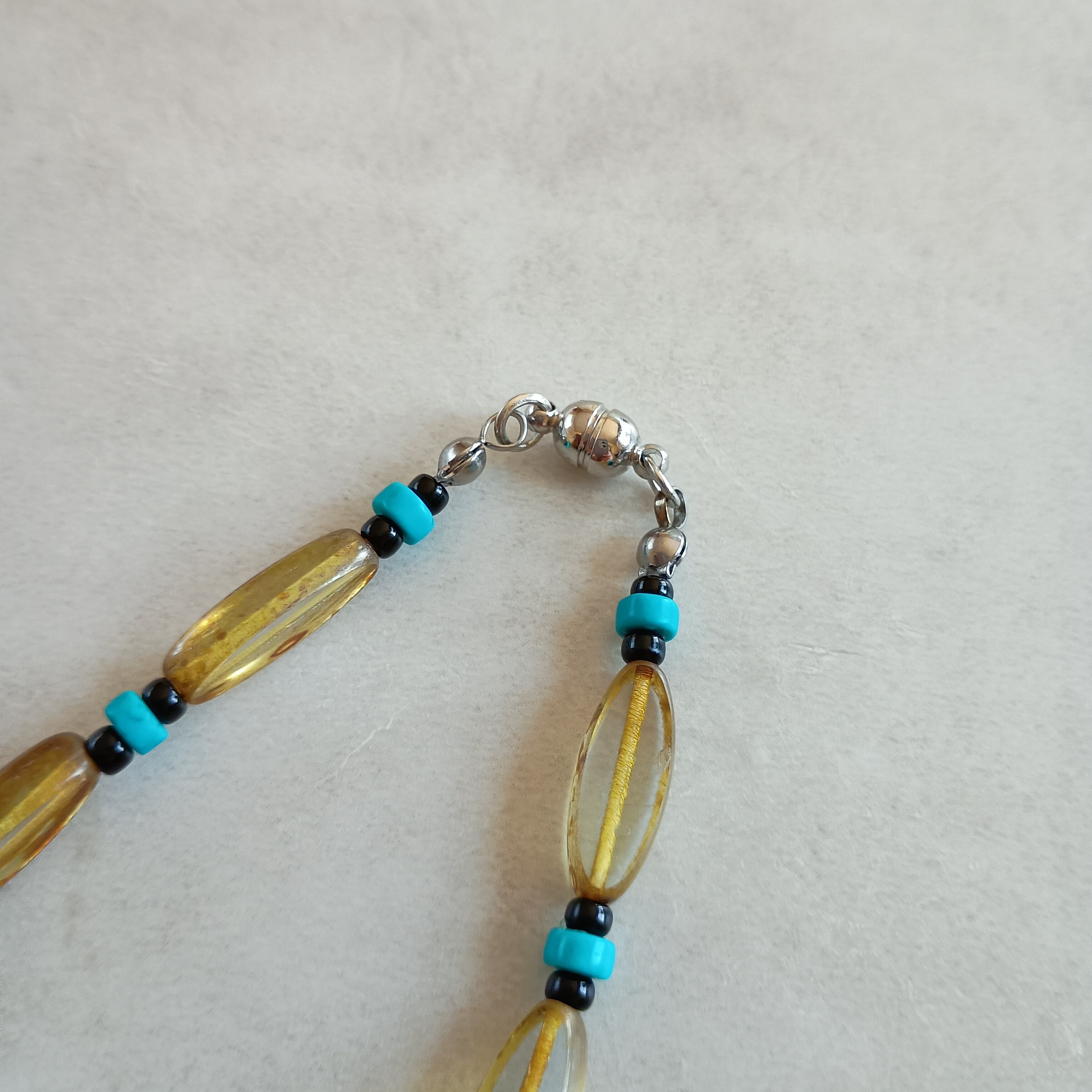 アンバー、ルビー、サファイヤといった宝石の名前を冠した、ガラスビーズ特有の深みのある色合いが全体に統一感と気品を与えています