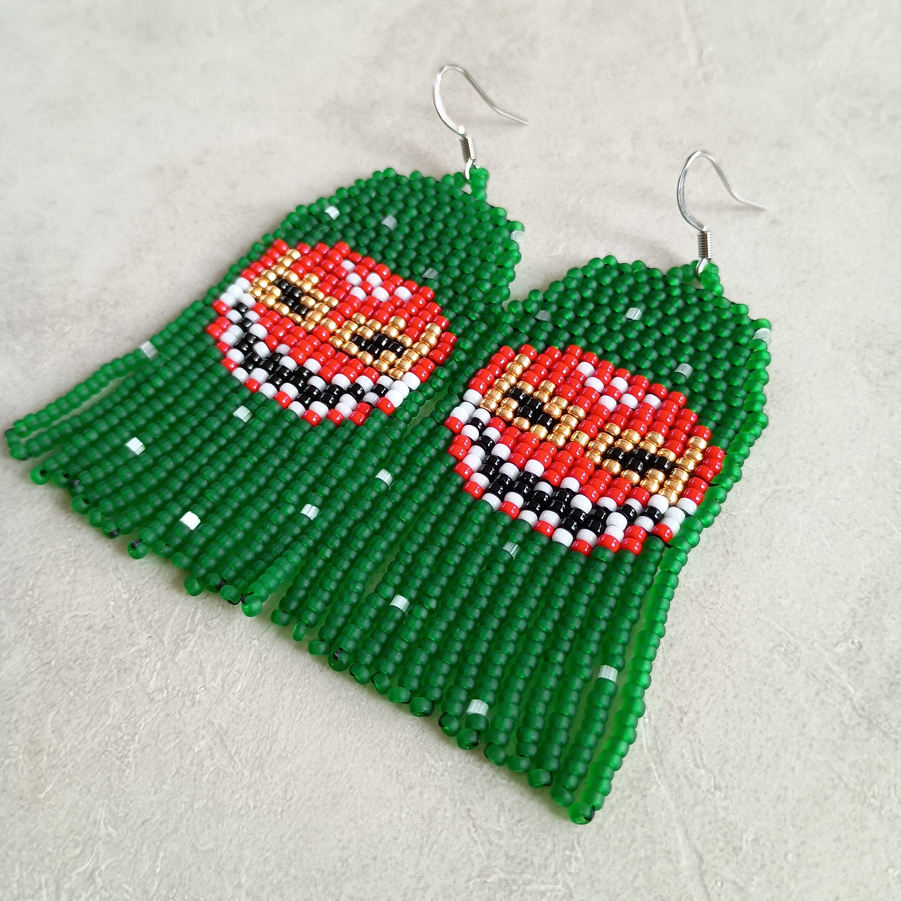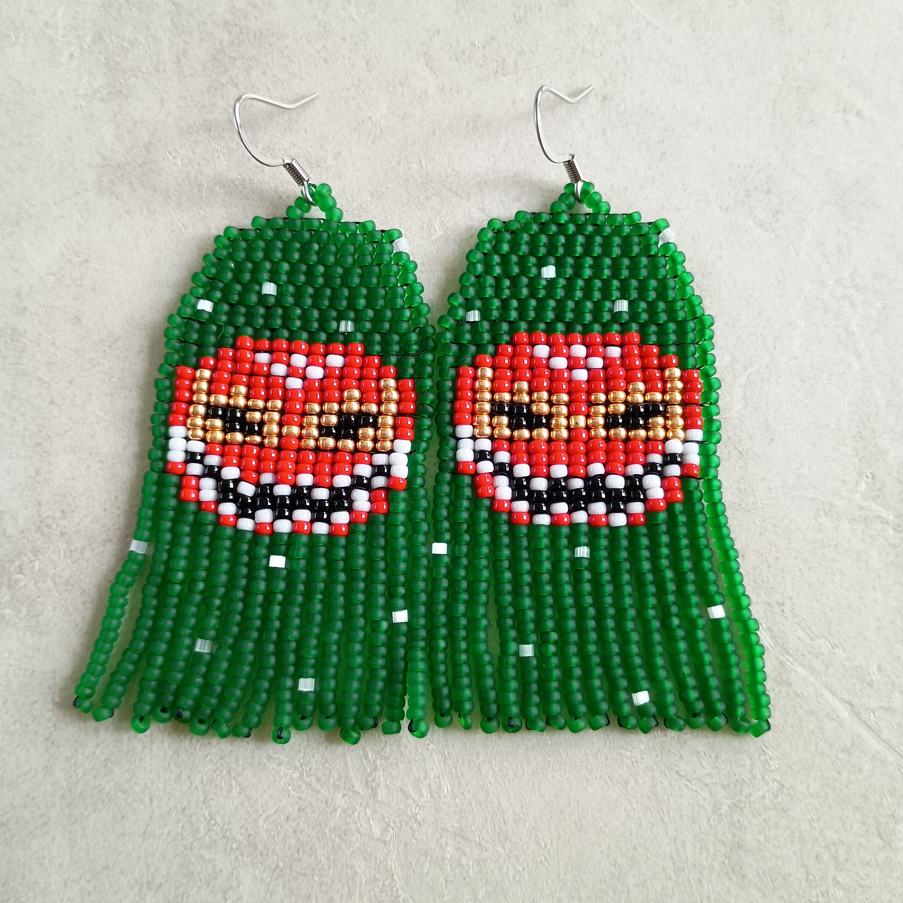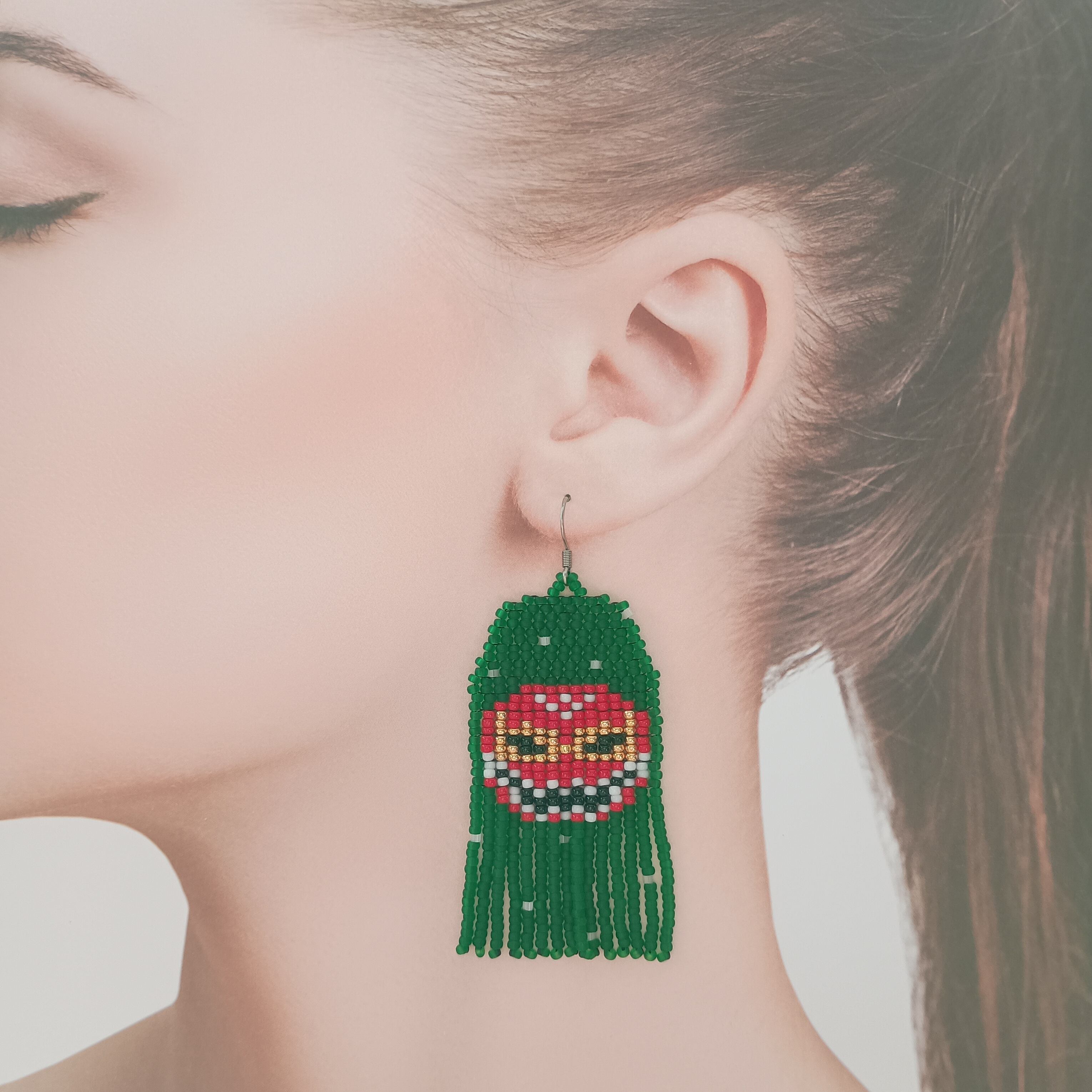 ルチャリブレ/ルチャドール/覆面レスラー/プロレス/メキシコ/個性的/大ぶり/揺れる/フリンジ/ビーズ/ガラスビーズ/国産ビーズ/日本製/サージカルステンレス/金属アレルギー対応/イヤリング/ピアス