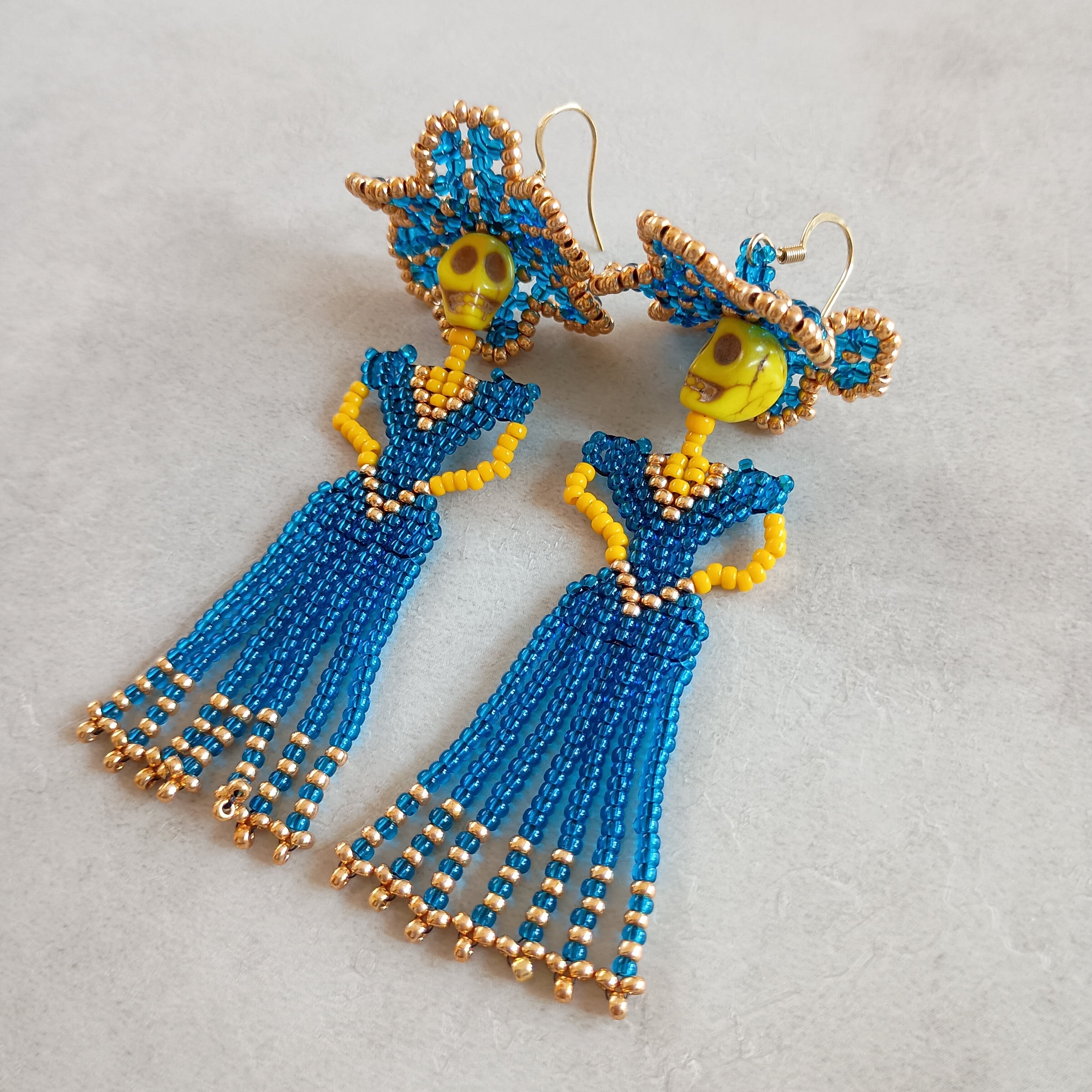 メキシコ/カトリーナ/死者の日/メキシカンスカル/カラベラ/スカル/フリンジ/大ぶり/揺れる/coco/リメンバーミー/サージカルステンレス/金属アレルギー対応/ピアス/イヤリング