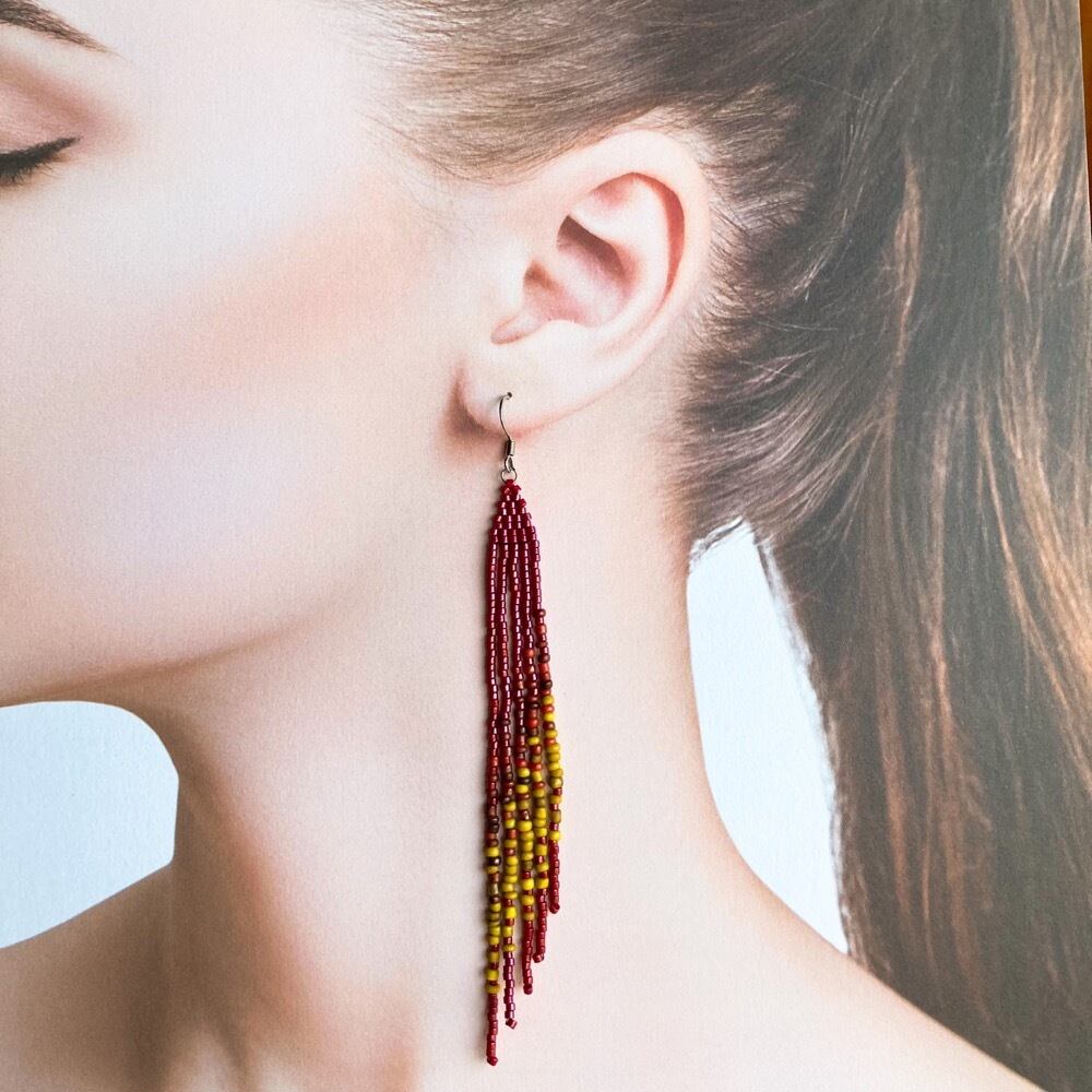 バリ島ビーズのフリンジピアス/イヤリング