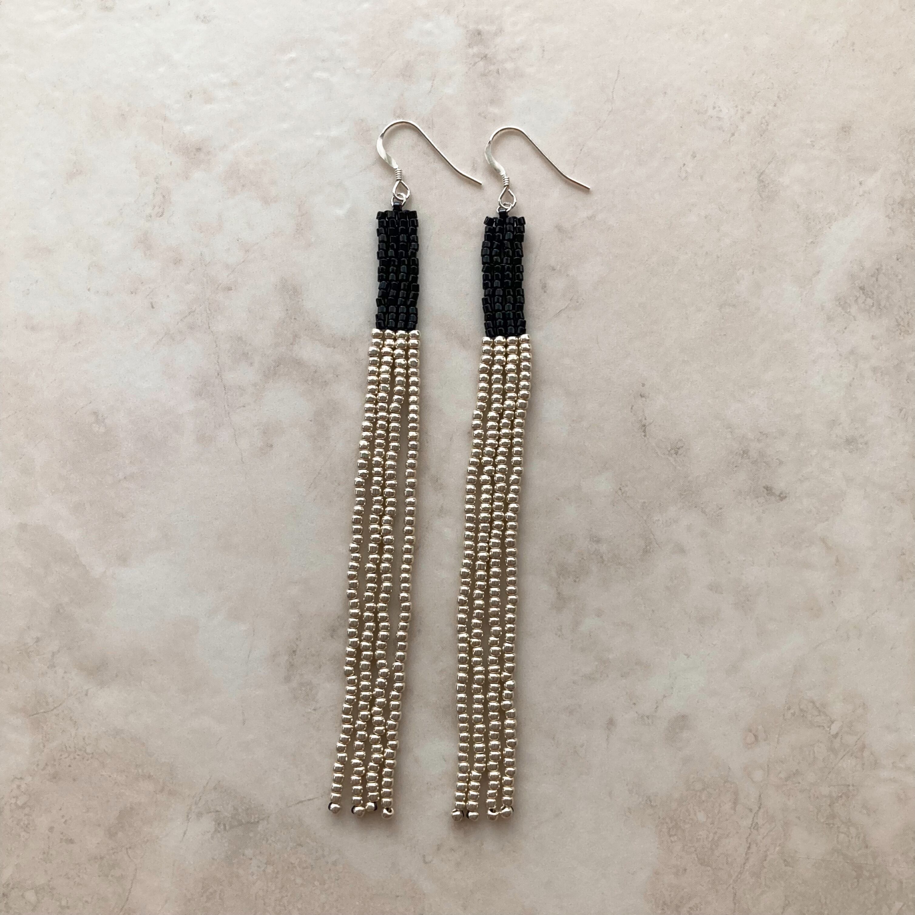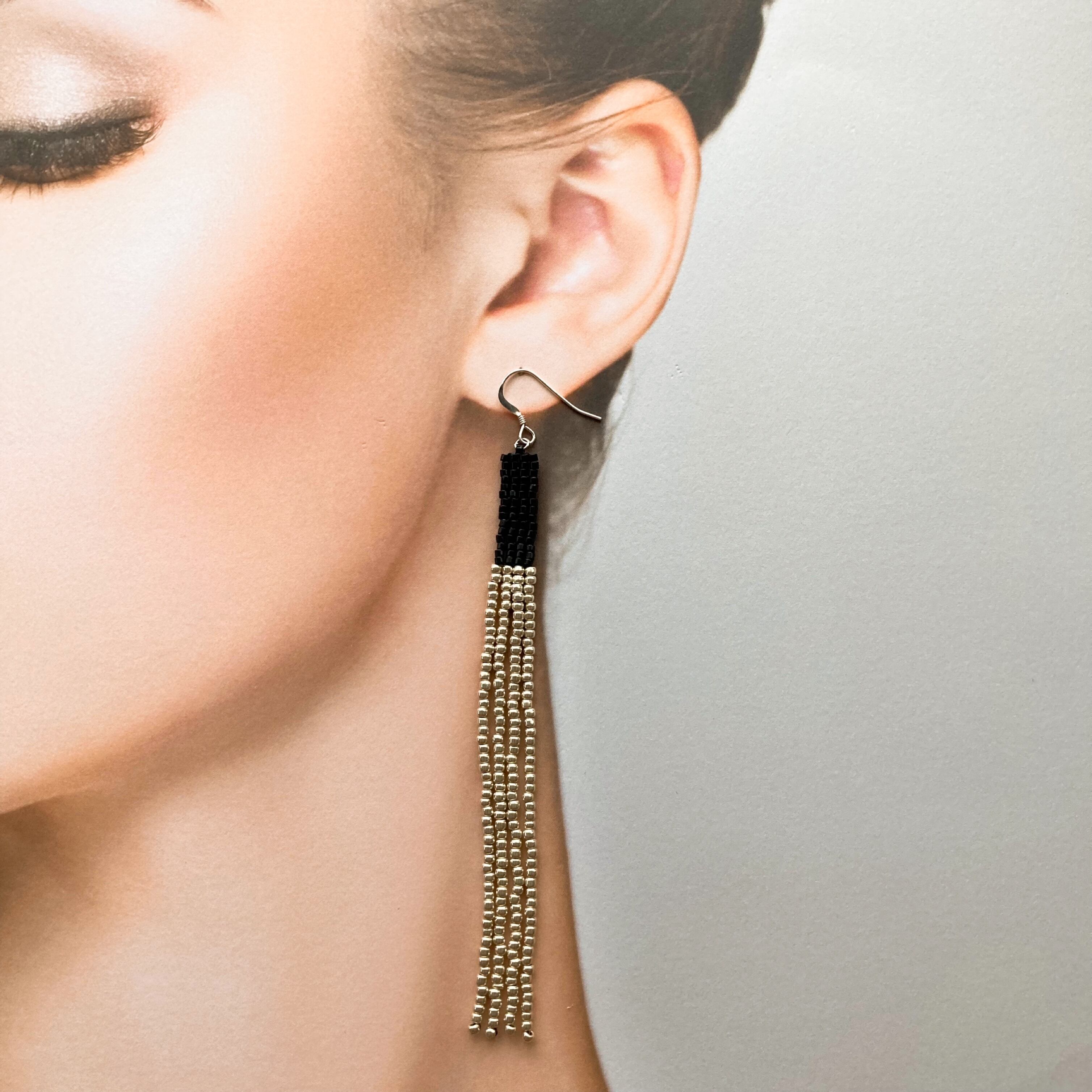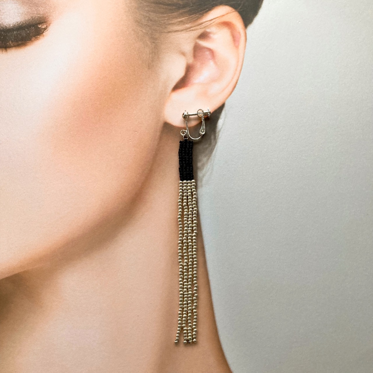 シルバーフリンジピアス ビーズ/ガラスビーズ/国産ビーズ/ロング/長め/フリンジ/上品/サージカルステンレス/silver925/シルバー/イヤリングに変更可能