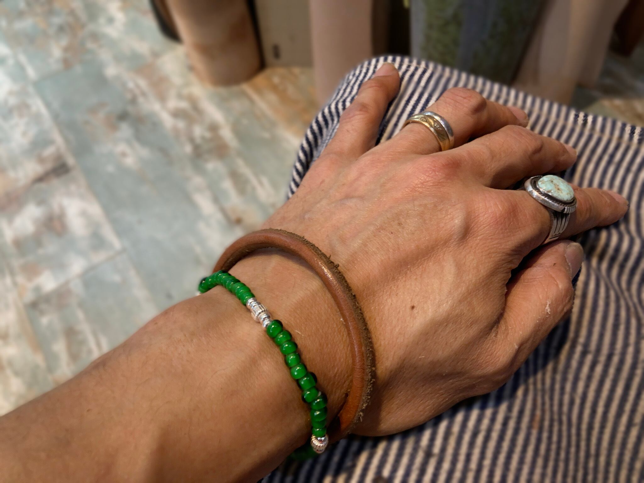 アメカジアクセサリー、特にインディアンジュエリーとして定番のホワイトハーツを使用したブレスレットです。