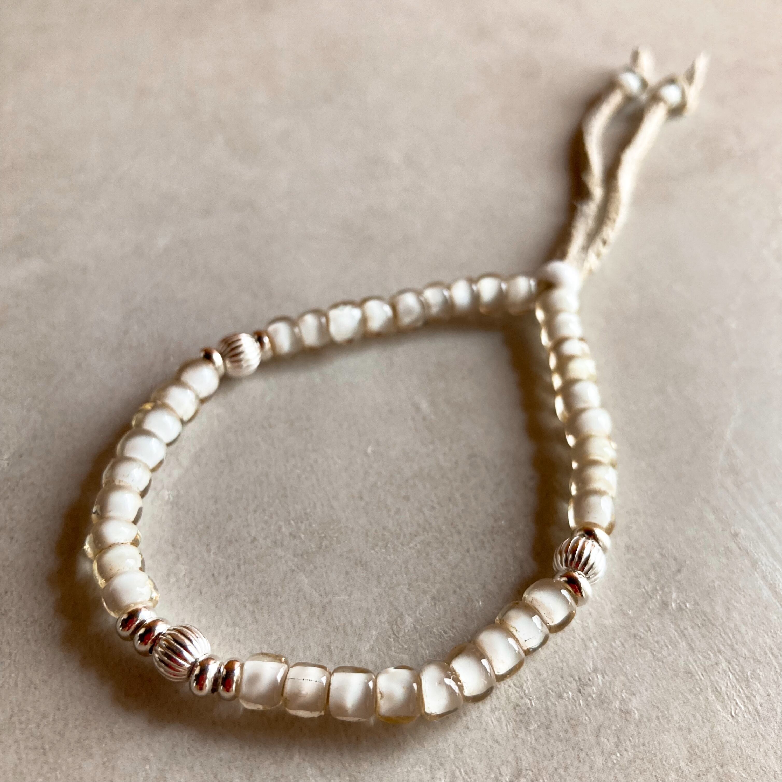 ホワイトハーツブレスレット 5mm玉 (Mサイズ) 鹿革
