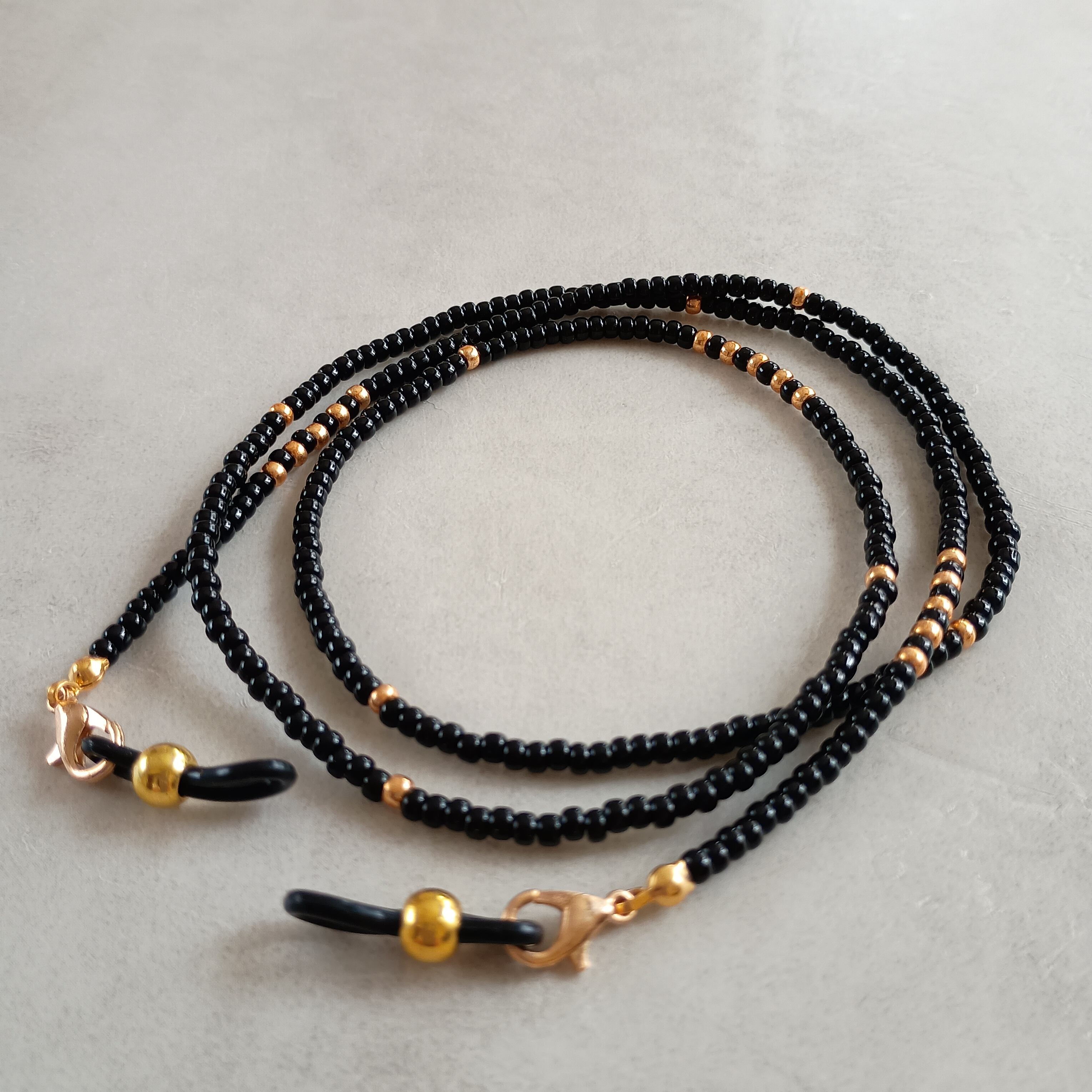 ビーズ/ガラスビーズ/国産ビーズ/グラスコード/メガネストラップ/メガネチェーン/ブラック/黒/ゴールド/金/キレイめ/便利/メガネがなくならない/なくさない/置き忘れ防止/ファッション