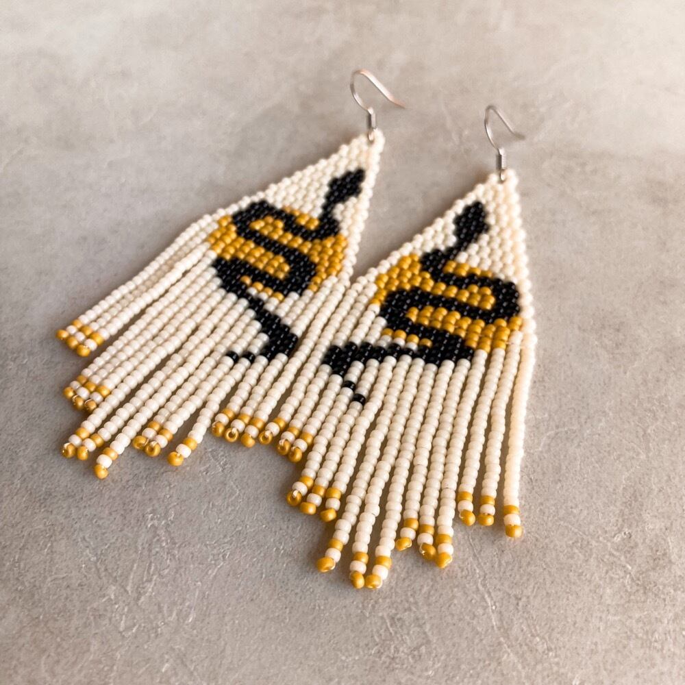 ビーズ/ガラスビーズ/国産ビーズ/日本製/綺麗/カッコイイ/ワイルド/スネーク/ヘビ/蛇/へび/パーティ/フェス/イベント/目を惹く/大ぶり/からし/マスタード/ブラック/フリンジ/揺れる