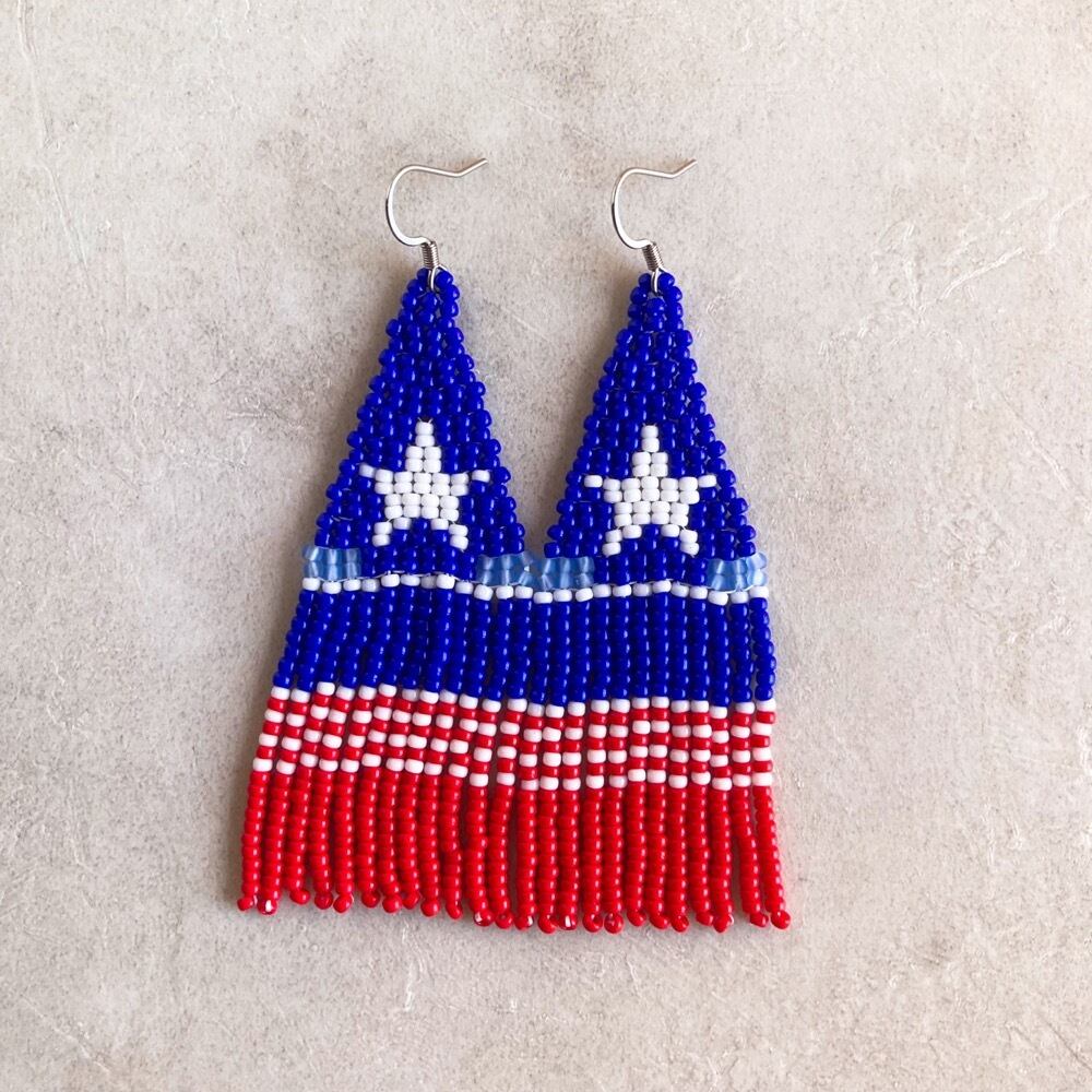 星/スター/アメリカ/キャプテンアメリカ/スーパーヒーロー/フリンジ/揺れる/金属アレルギー対応/イヤリングに変更可能/silver925/サージカルステンレス