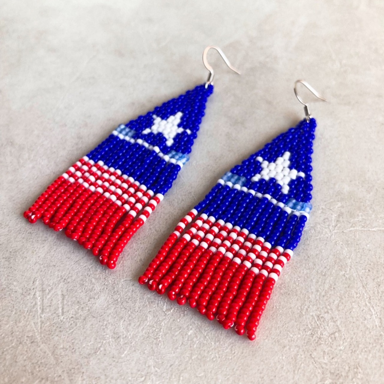 スーパーヒーローを思わせる派手派手なフリンジピアスが完成しました!