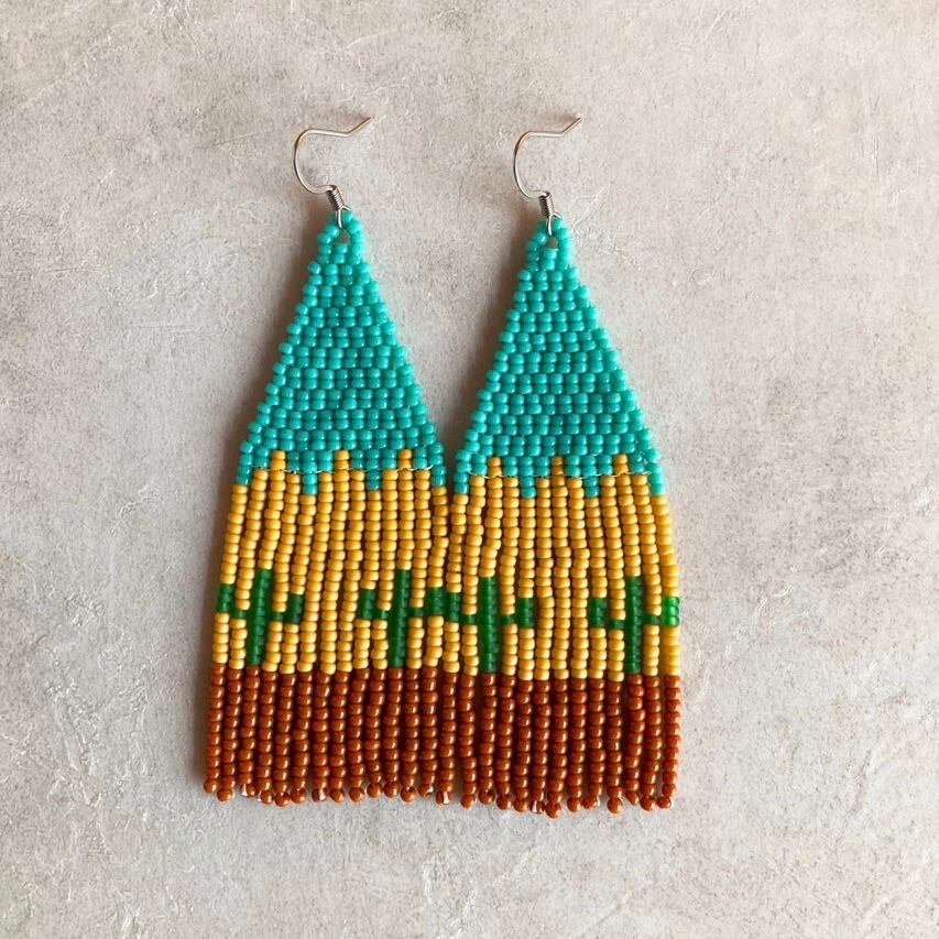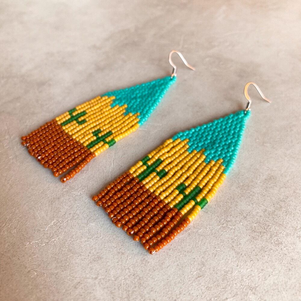 ビーズ/ガラスビーズ/国産ビーズ/カジュアル/カワイイ/カッコイイ/個性的/金属アレルギー対応/軽い/軽量/ネイティブ/ボーホー/ジプシー/ボヘミアン/インディアン/フォークロア/フォークロアファッション/古着ファッション/日本製/サージカルステンレス/silver925/ピアス/イヤリング/サボテン/カクタス/ウエスタン