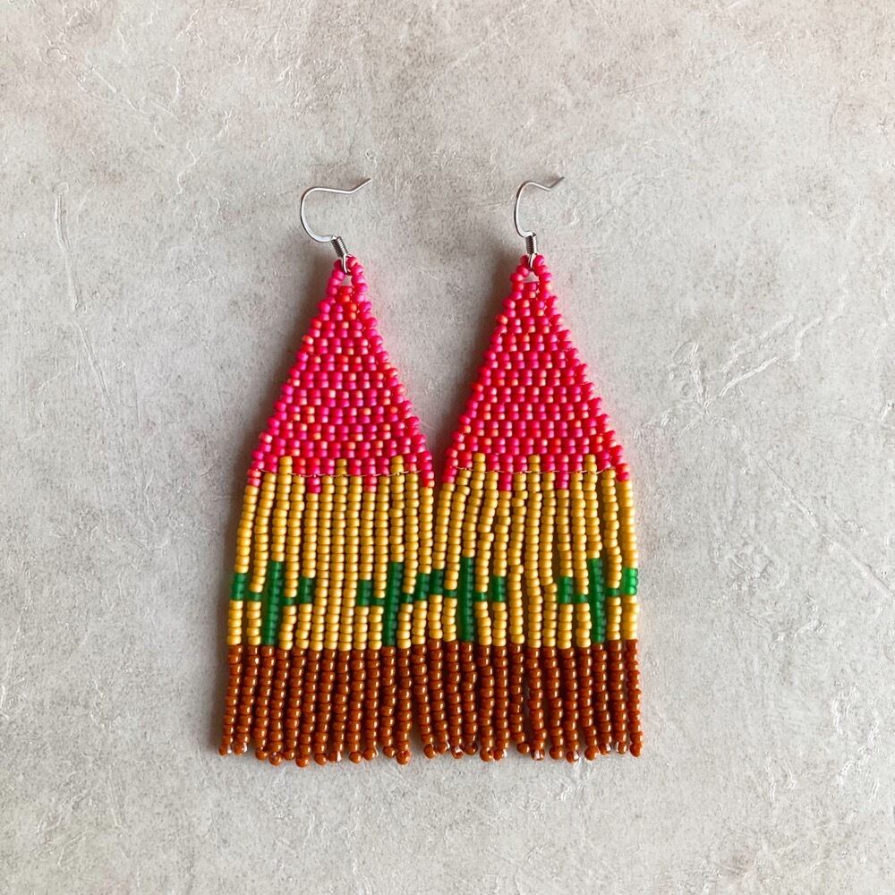 大ぶりのサイズ感と色鮮やかなデザインで、耳元を彩ります