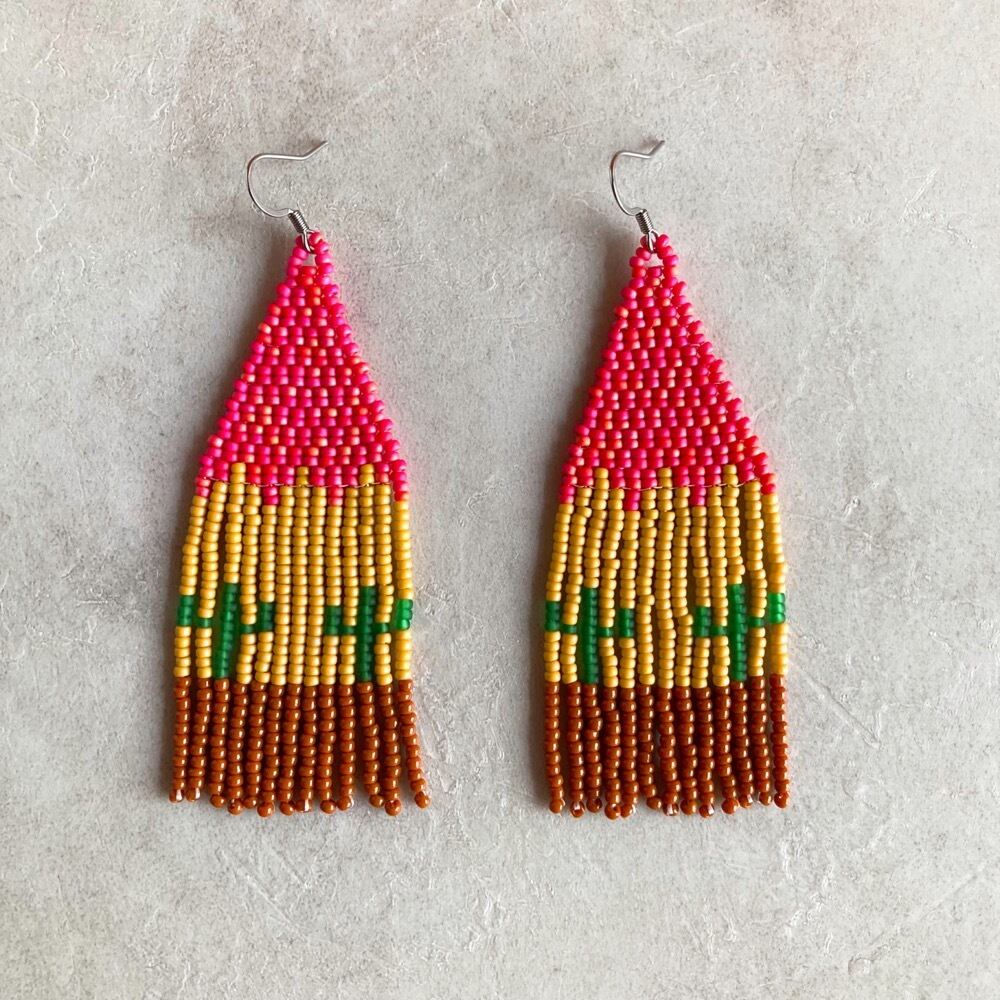 サボテン/カクタス/ネイティブ/フリンジ/個性的/揺れる/アート/大ぶり/サージカルステンレス/金属アレルギー対応/silver925/イヤリング/ピアス