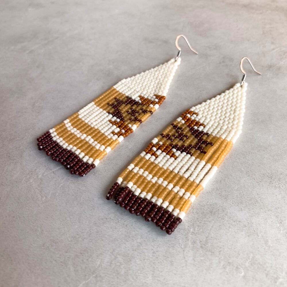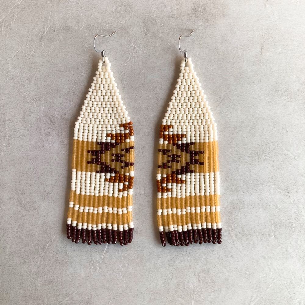 オルテガ柄のフリンジピアス/イヤリングです♪