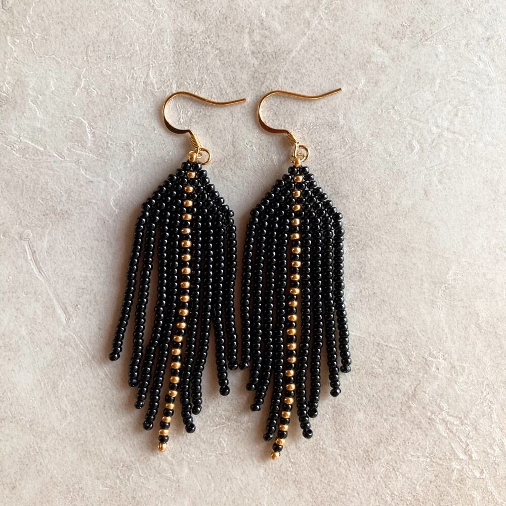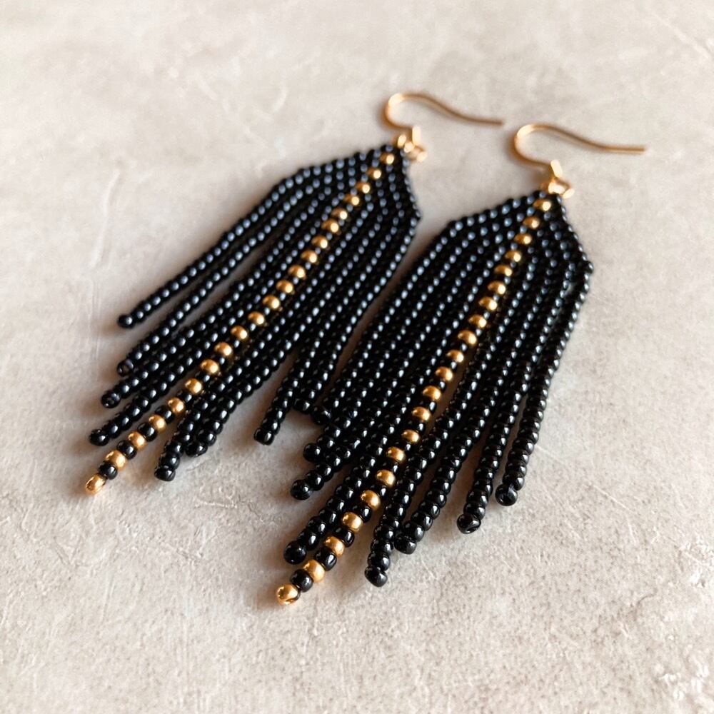 ブラックのフリンジピアス/イヤリング✨