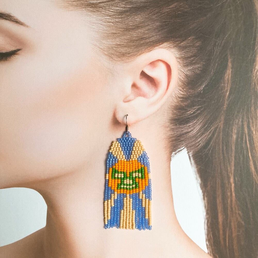 メキシコのプロレスラーのカラフルなマスクをフリンジピアスにしました♪