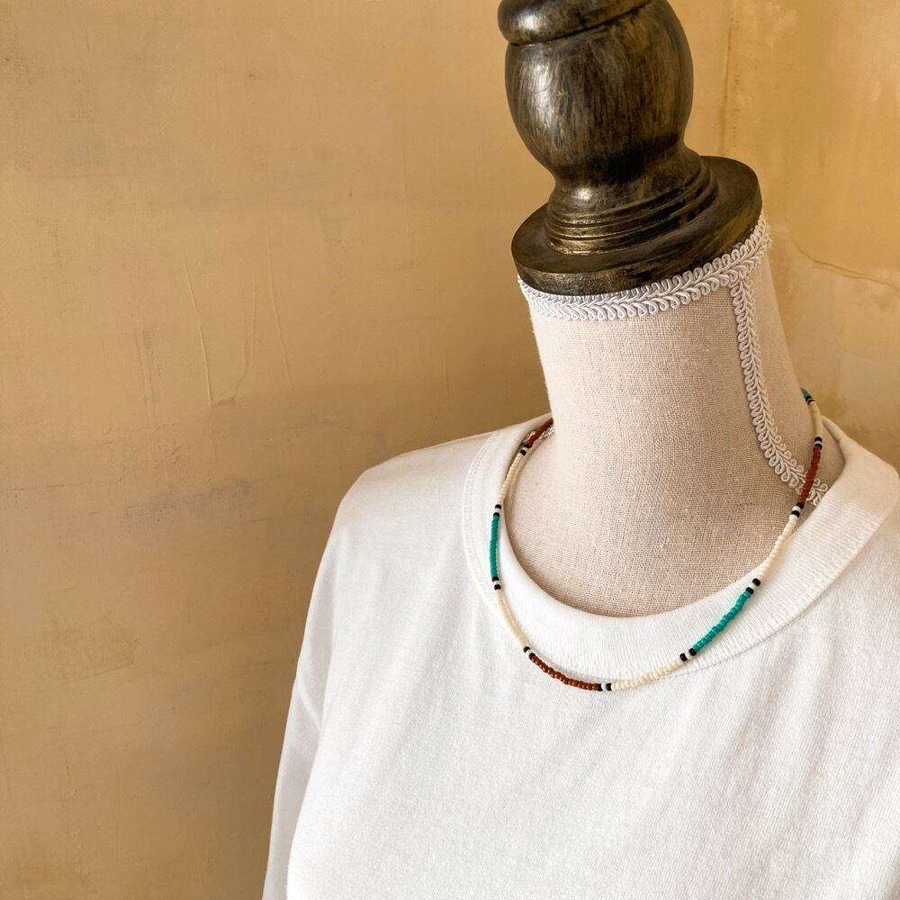 国産の高品質ガラスビーズを使用したネイティブパターンのネックレスです。