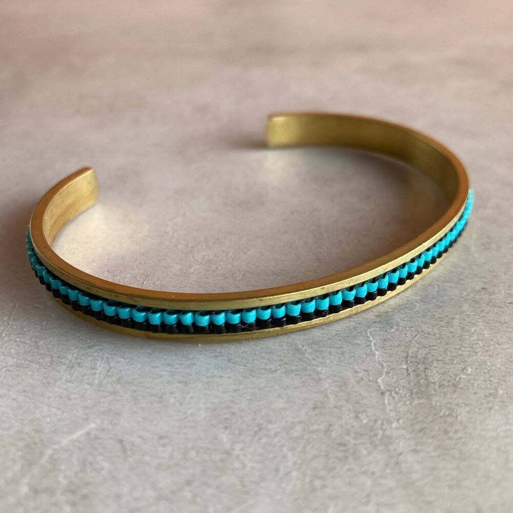 ビーズ/ガラスビーズ/国産ビーズ/真鍮/バングル/ブラス/ブラスバングル/デイリー/シンプル/オシャレ/抜け感/ネイティブ/ボーホー/ジプシー/ボヘミアン/インディアン/フォークロア/フォークロアファッション/古着ファッション/アメカジ/ユニセックス