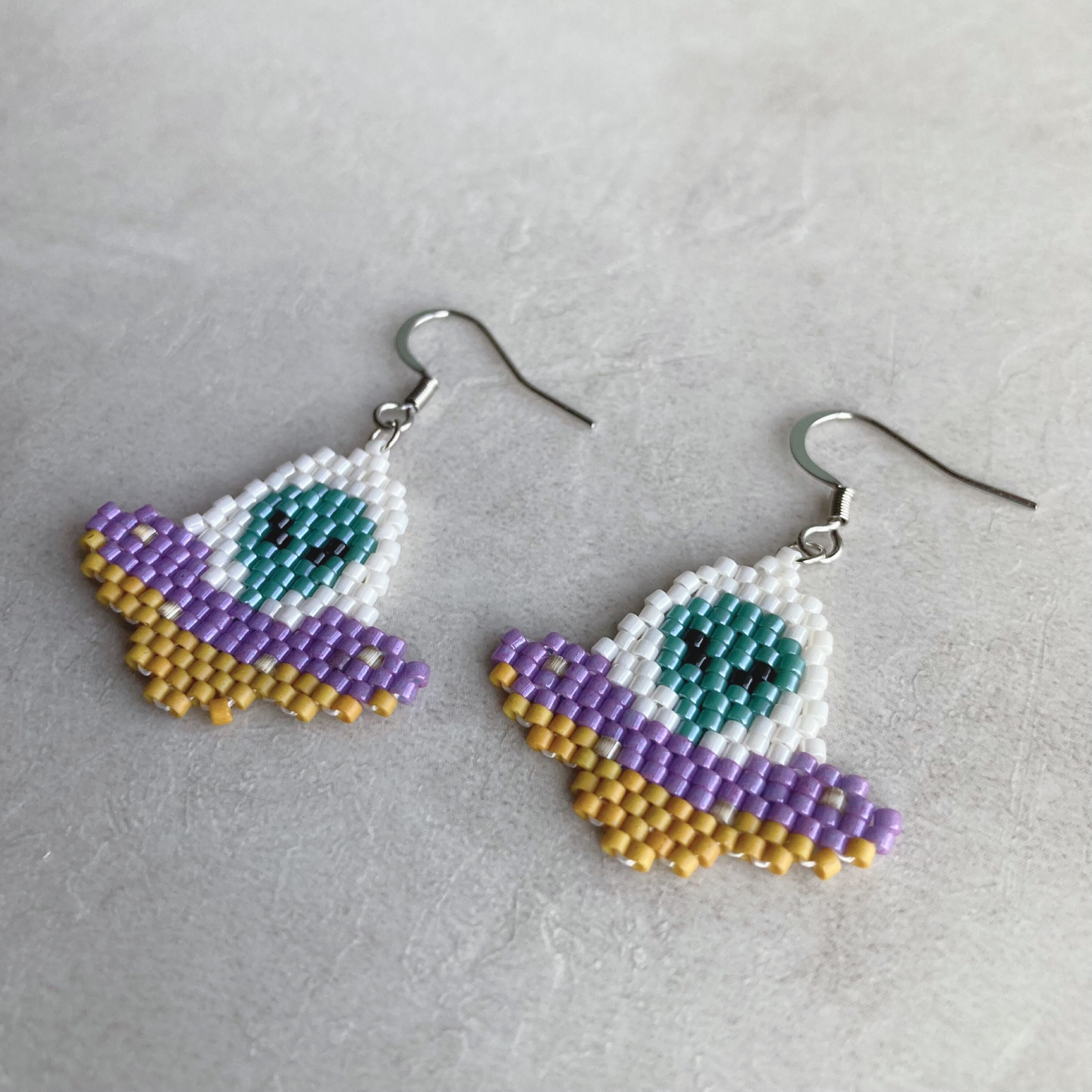 ビーズ/ガラスビーズ/国産ビーズ/カジュアル/カワイイ/カッコイイ/個性的/金属アレルギー対応/軽い/軽量/ネイティブ/ボーホー/ジプシー/ボヘミアン/インディアン/フォークロア/フォークロアファッション/古着ファッション/日本製/サージカルステンレス/silver925/ピアス/イヤリング/UFO/宇宙人