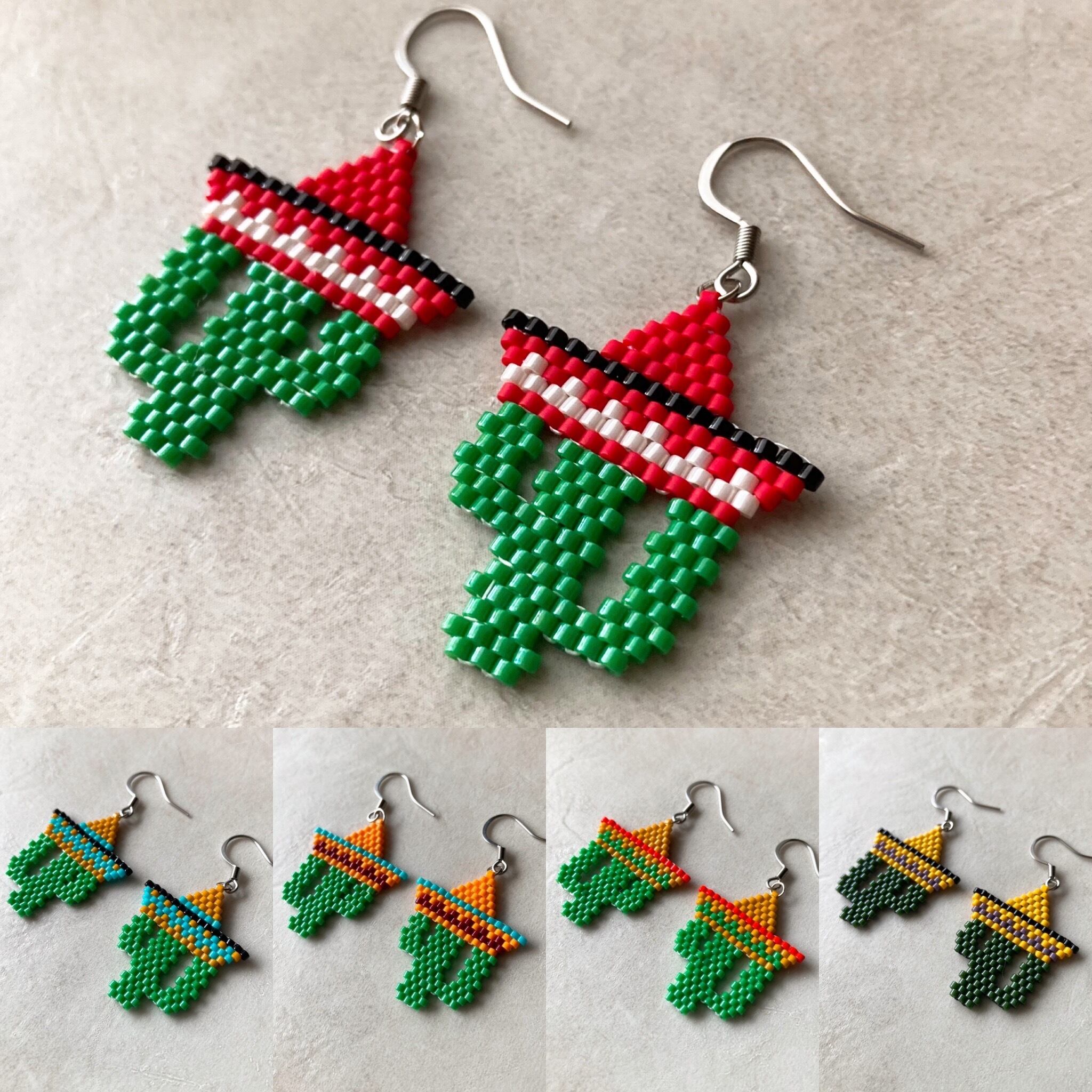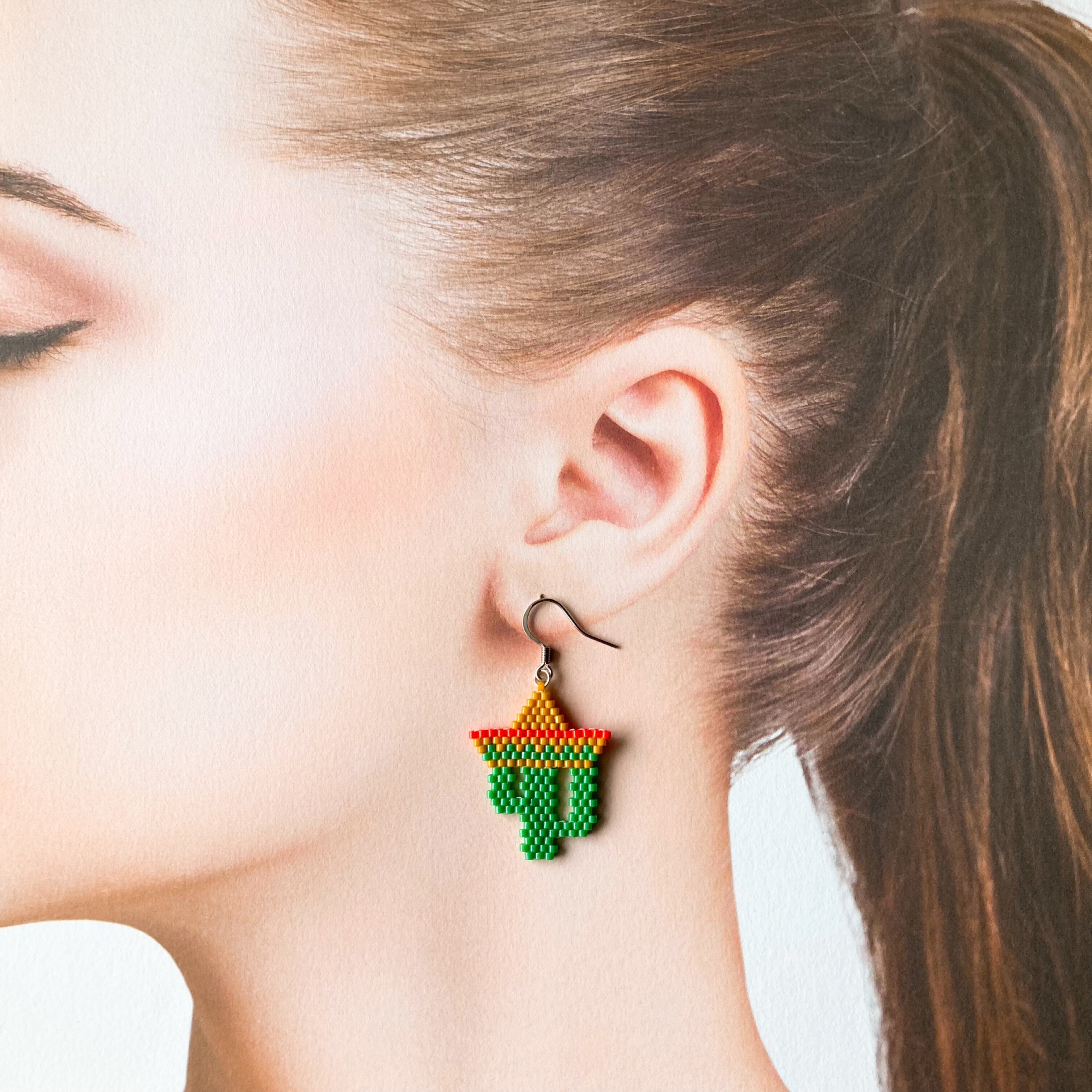 ロカビーズ/ビーズ/ガラスビーズ/国産ビーズ/カジュアル/カワイイ/カッコイイ/個性的/金属アレルギー対応/軽い/軽量/ネイティブ/ボーホー/ジプシー/ボヘミアン/インディアン/フォークロア/フォークロアファッション/古着ファッション/日本製/サージカルステンレス/silver925/ビーズピアス/ビーズイヤリング/サボテン/カクタス/ウエスタン