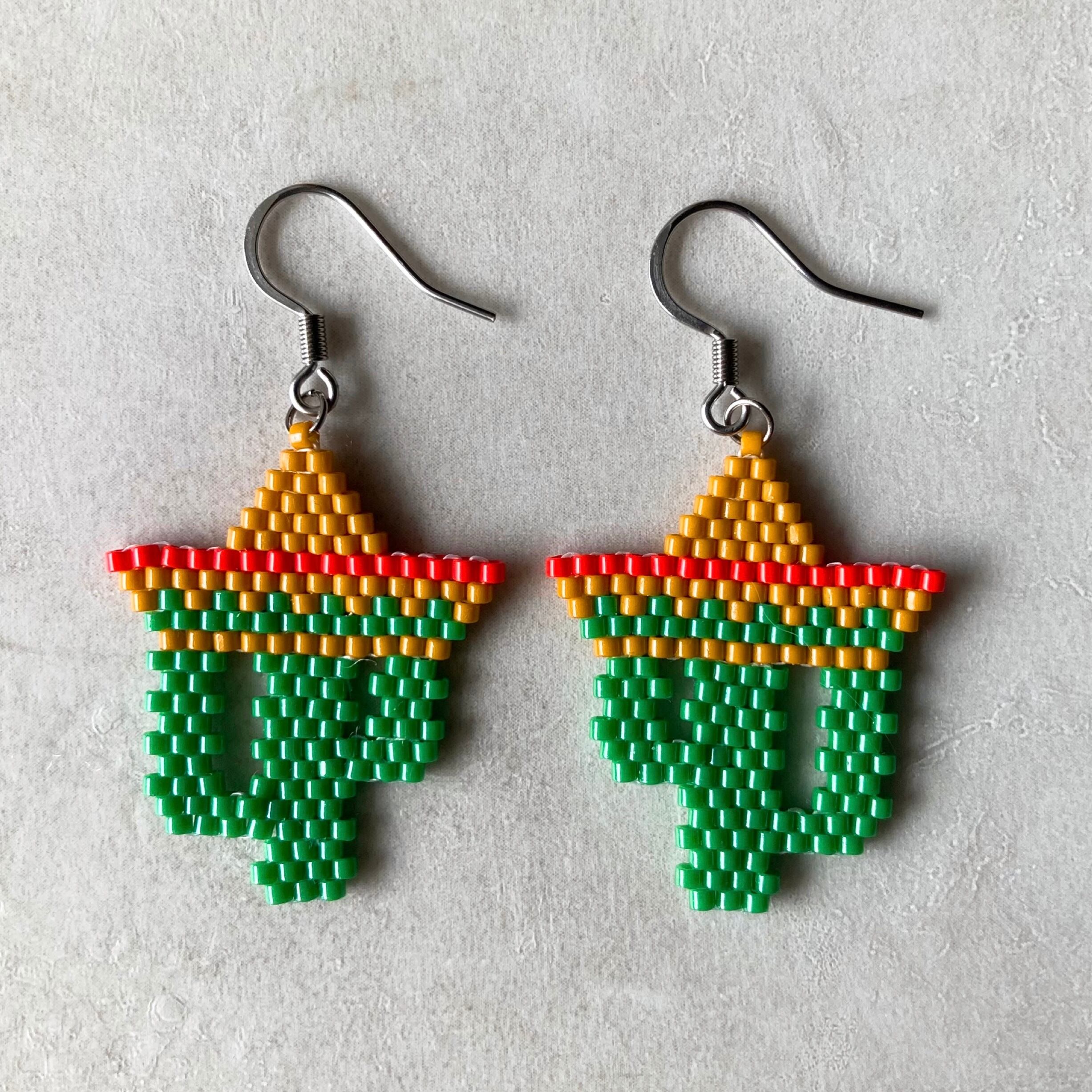 ソンブレロをかぶったサボテンのピアス/イヤリング