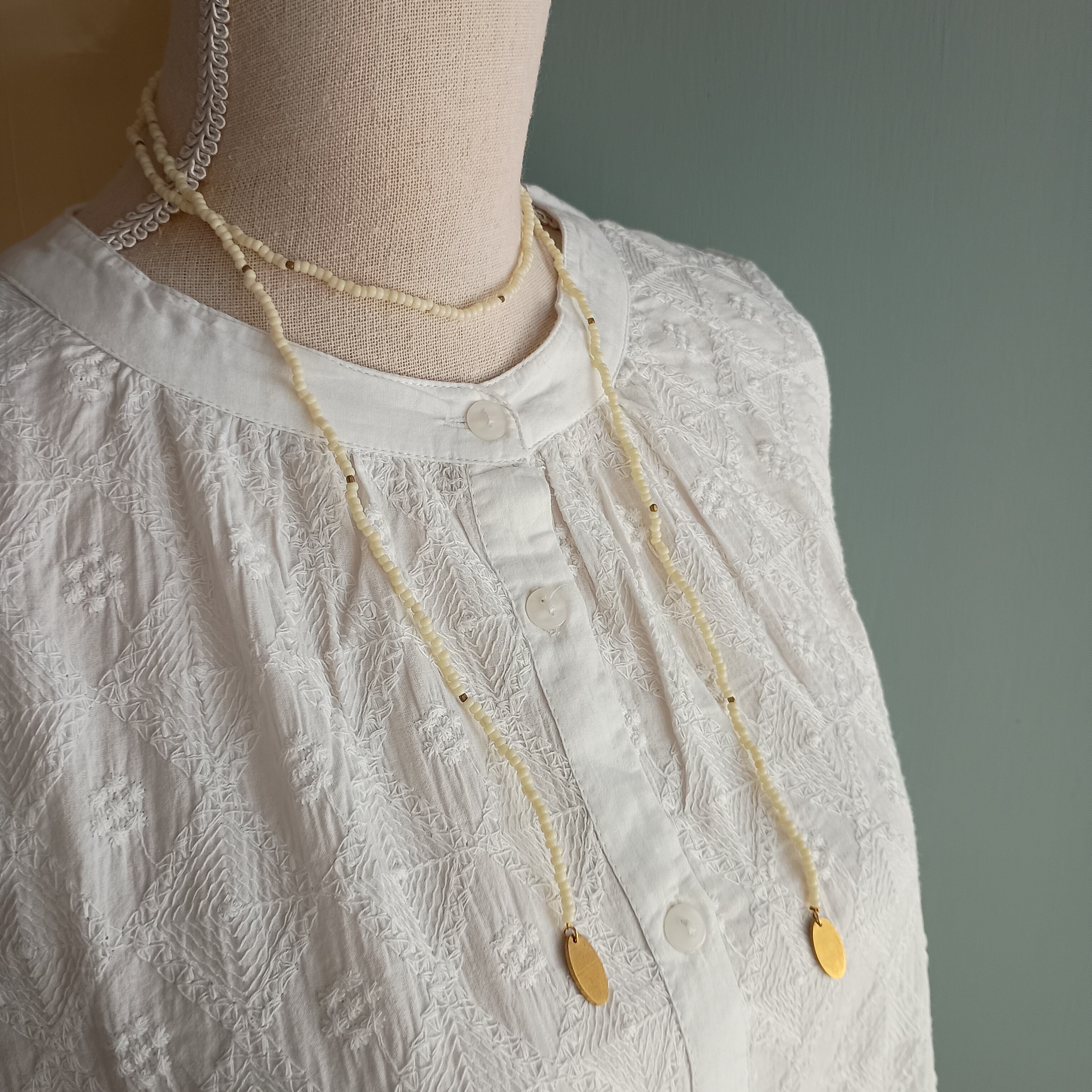 brass/ブラス/真鍮/ガラスビーズ/ラリエット/ネックレス/チョーカー/アレンジ可能/長い/ロング